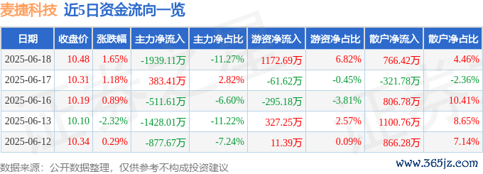 本站消息,截至2025年6月18日收盘信富网,麦捷科技(300319)报收于10.48元,上涨1.65%,换手率2.0%,成交量16.56万手,成交额1.72亿元。
